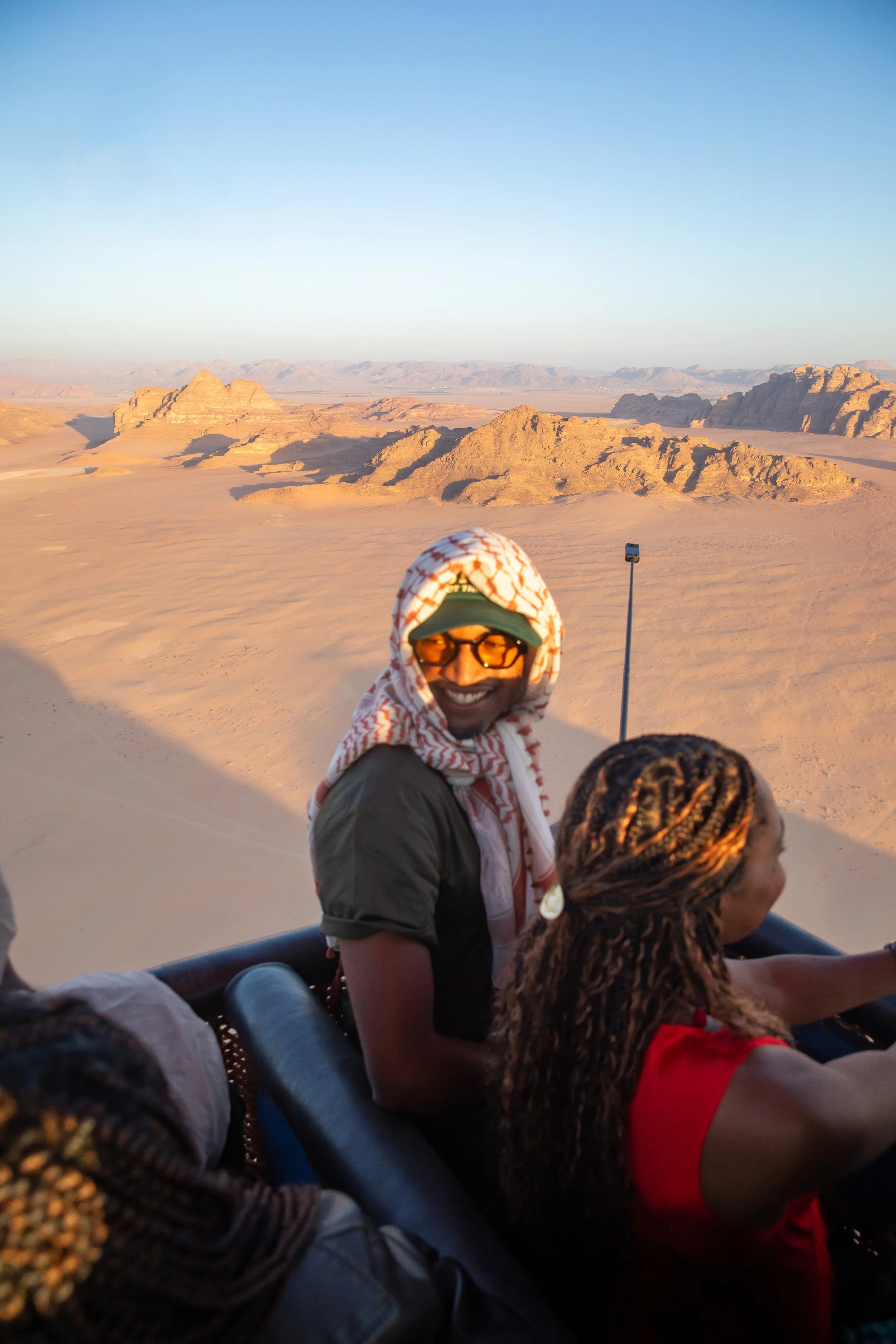 On our first morning in Wadi Rum, we took to the skies with Balloons Over Rum and let me tell you — floating over Wadi Rum at sunrise is otherworldly. Watching the shadows stretch across the desert from above, seeing how the wind shapes the dunes — it’s a perspective that makes everything feel both vast and personal. Huge shoutout to the crew at Balloons Over Rum for making it feel safe, calm and unforgettable.